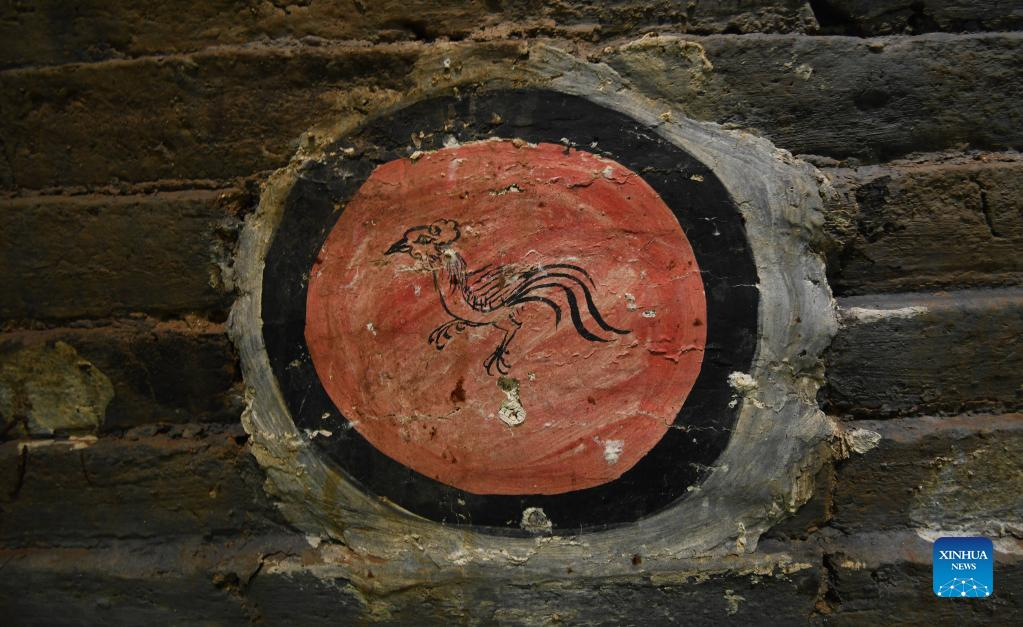 Undated photo provided by the Shanxi provincial institute of archaeology shows a mural in a tomb chamber in Luzhou District of Changzhi City, north China's Shanxi Province.(Xinhua)