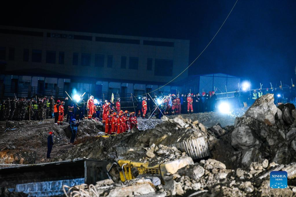 Rescuers work at the site of a landslide in Bijie, southwest China's Guizhou Province, Jan. 4, 2022. (Xinhua/Yang Wenbin)