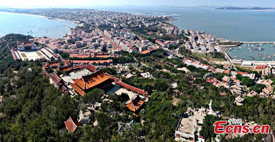 Aerial photo of the Mazu Ancestral Temple complex on the Meizhou Island, Putian, east China's Fujian Province, Jan. 3, 2022. (Photo: China News Service/Wang Dongming)