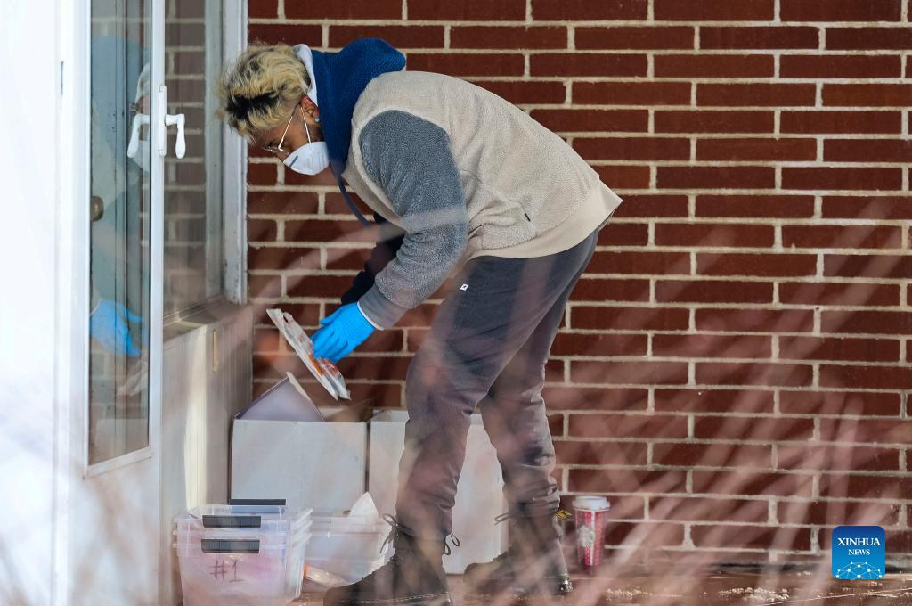 A medical worker puts COVID-19 test samples into a box at a pop-up COVID-19 testing site in Evanston, Illinois, the United States, on Jan. 4, 2022. More than 103,000 people are currently hospitalized with COVID-19 in the United States, the first time the total has reached six figures in nearly four months, CNN on Tuesday quoted the latest data from the U.S. Department of Health and Human Services as saying. (Photo by Joel Lerner/Xinhua)
