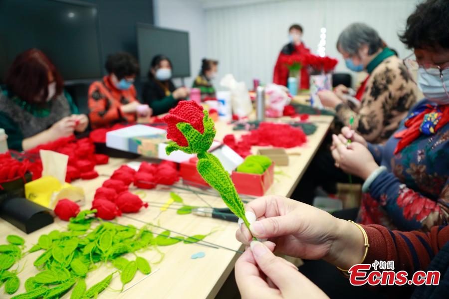 Shanghai aunties make woolen bouquets for Winter Olympics (4)