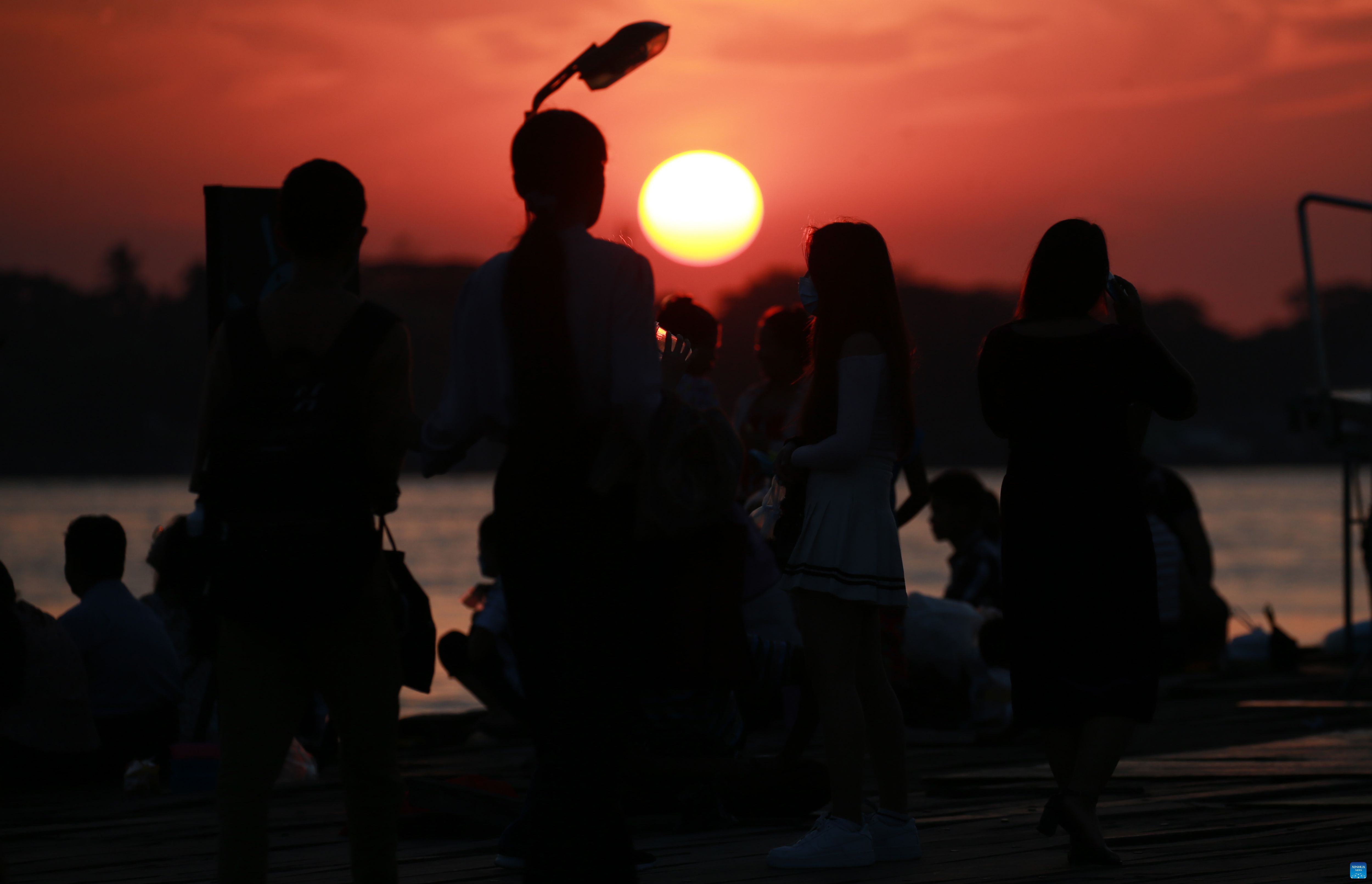 isitors enjoy the last sunset of 2021 at Botahtaung harbor in Yangon, Myanmar, Dec. 31, 2021. (Xinhua/U Aung)