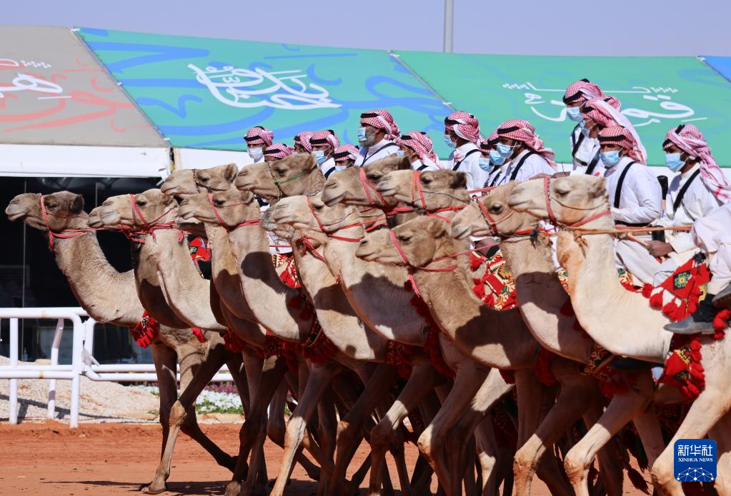 People ride camels for a parade during the King Abdulaziz Camel Festival in north of Riyadh, Saudi Arabia, on Jan. 5, 2022. The festival kicked off here on Dec. 1, 2021, with the participation of about 33,000 camel owners. (Xinhua/Wang Haizhou)