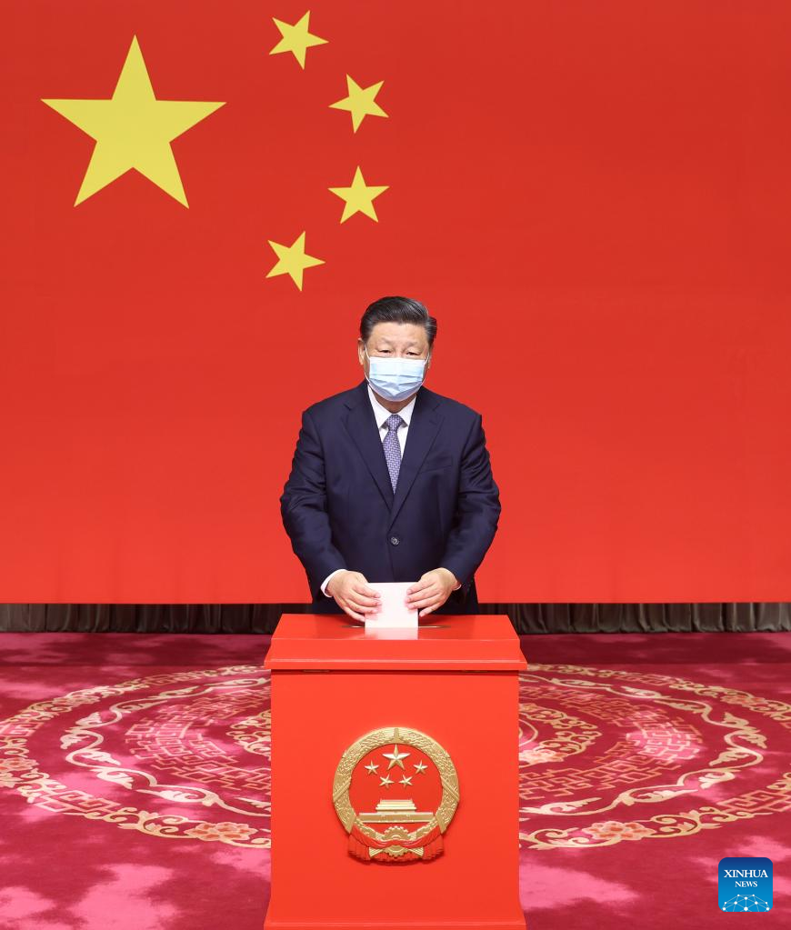 Chinese President Xi Jinping, also general secretary of the Communist Party of China Central Committee and chairman of the Central Military Commission, casts his ballot at a polling station to elect deputies to the Xicheng district people's congress, in Huairentang, Zhongnanhai electoral district in Xicheng District of Beijing, capital of China, Nov. 5, 2021. (Xinhua/Ju Peng)