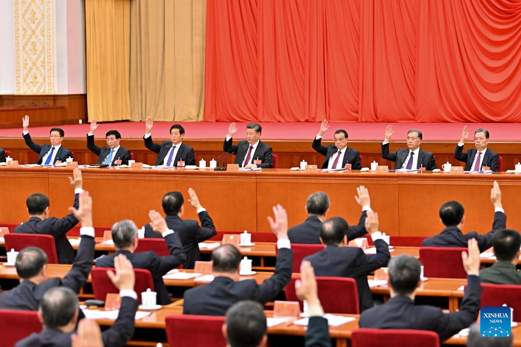 Xi Jinping, Li Keqiang, Li Zhanshu, Wang Yang, Wang Huning, Zhao Leji and Han Zheng attend the sixth plenary session of the 19th Communist Party of China Central Committee in Beijing, capital of China. The session was held in Beijing from Nov. 8 to 11, 2021. (Xinhua/Li Tao)