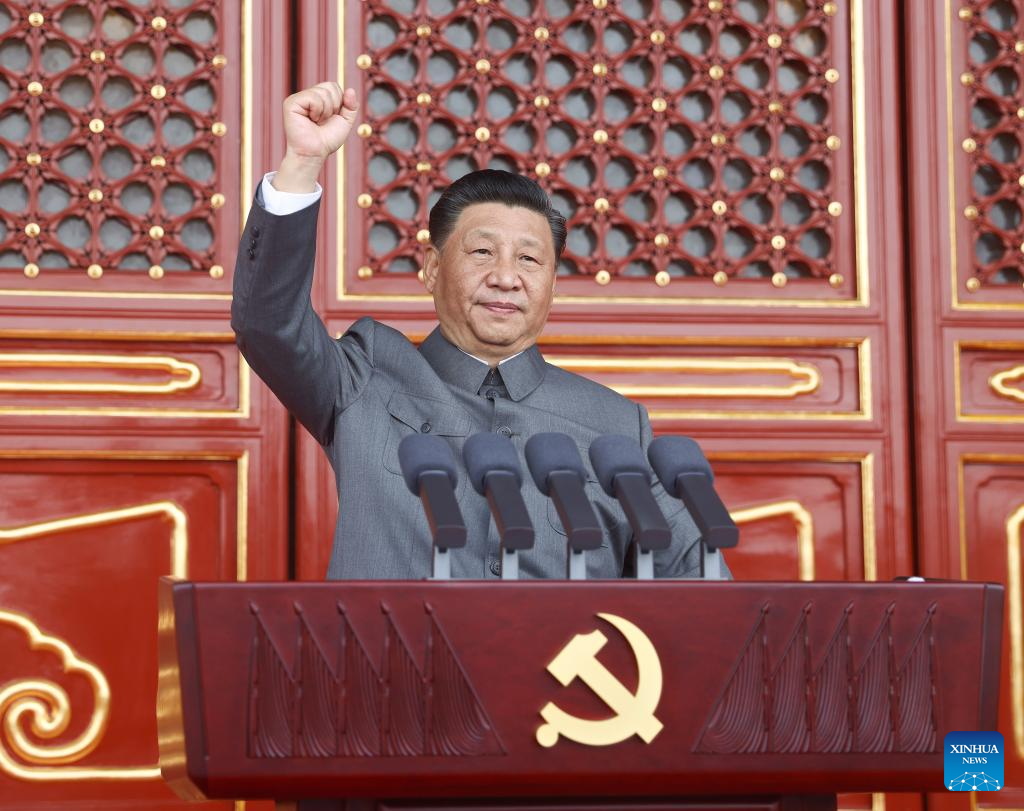 Xi Jinping, general secretary of the Communist Party of China (CPC) Central Committee, Chinese president and chairman of the Central Military Commission, delivers an important speech at a ceremony marking the 100th anniversary of the founding of the CPC in Beijing, capital of China, July 1, 2021. (Xinhua/Ju Peng)