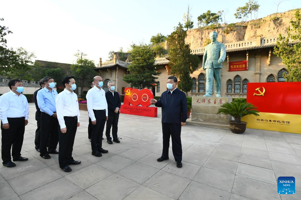 Chinese President Xi Jinping, also general secretary of the Communist Party of China Central Committee and chairman of the Central Military Commission, visits Yangjiagou revolutionary site in Mizhi County during his inspection tour of Yulin City in northwest China's Shaanxi Province, Sept. 13, 2021. Xi inspected Yulin City in Shaanxi Province from Sept. 13 to 14, 2021. (Xinhua/Xie Huanchi)