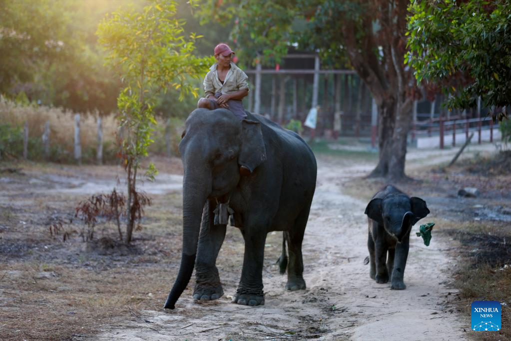A baby elephant is seen at the Wingabaw Elephant Camp in Bago region, Myanmar, on Jan. 7, 2022. (Xinhua/U Aung)