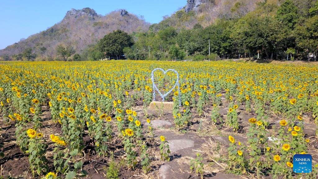 Photo taken on Jan. 6, 2022 shows sunflower fields in Lopburi, Thailand. Lopburi province is famous for a large sunflower plantation in Thailand. From November to January, the golden sunflower fields attract many tourists. (Xinhua/Wang Teng)