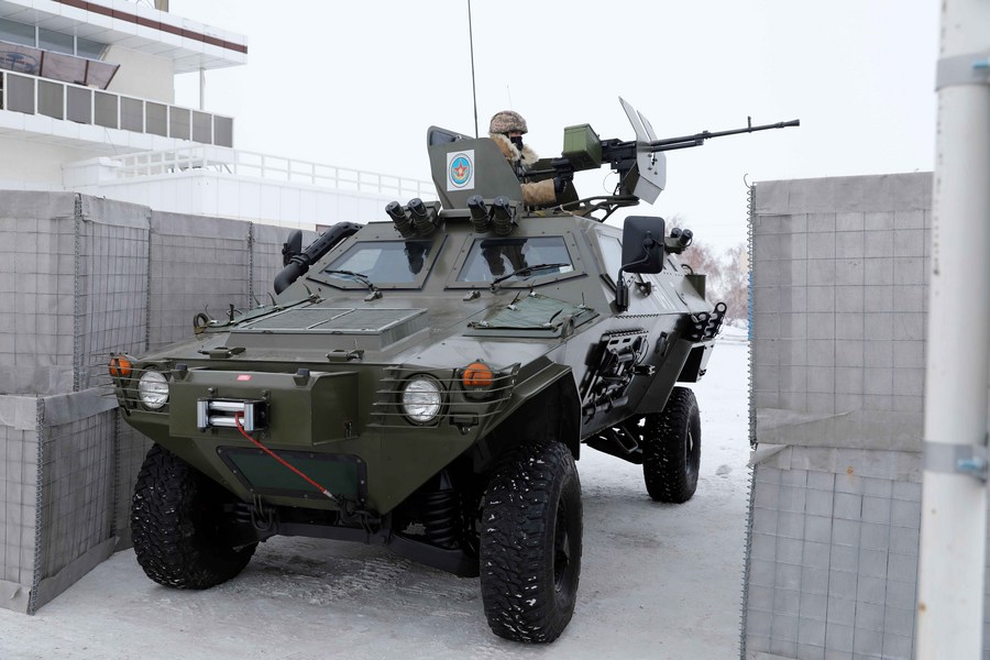 Security forces beef up security checks at the entry and exit point of Nur-Sultan, Kazakhstan on Jan. 7, 2022. (Photo by Kalizhan Ospanov/Xinhua)