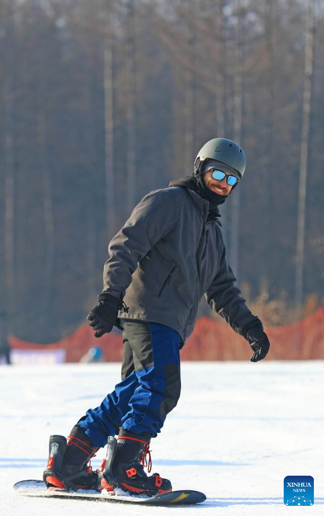 Ryan is seen at a ski resort in Shenyang, northeast China's Liaoning Province, Jan. 8, 2022. Ryan is a 38-year-old Canadian living in Shenyang. Ryan came to China for the first time in 2013 and now works as an engineer at a company in Shenyang. Ryan is an enthusiast devoted to winter sports, especially ice hockey. Through weekly training in ice hockey, Ryan made friends with many local ice hockey lovers. As the 2022 Beijing Olympics approaches, Ryan is looking forward to a great performance from all the athletes. He wishes the Beijing Winter Olympics a great success. (Xinhua/Yang Qing)