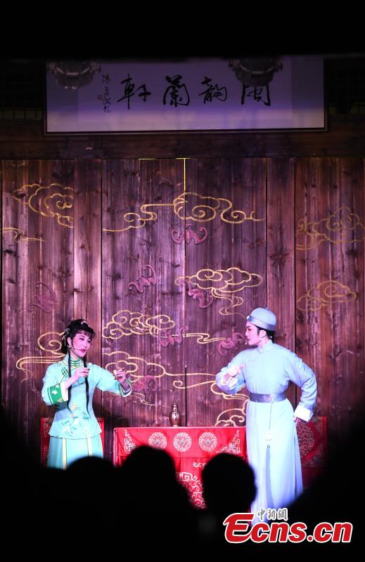 Two artists perform an opera in the Three Lanes and Seven Alleys in Fuzhou, January 10, 2022. (Photo: China News Service/Wang Dongming)