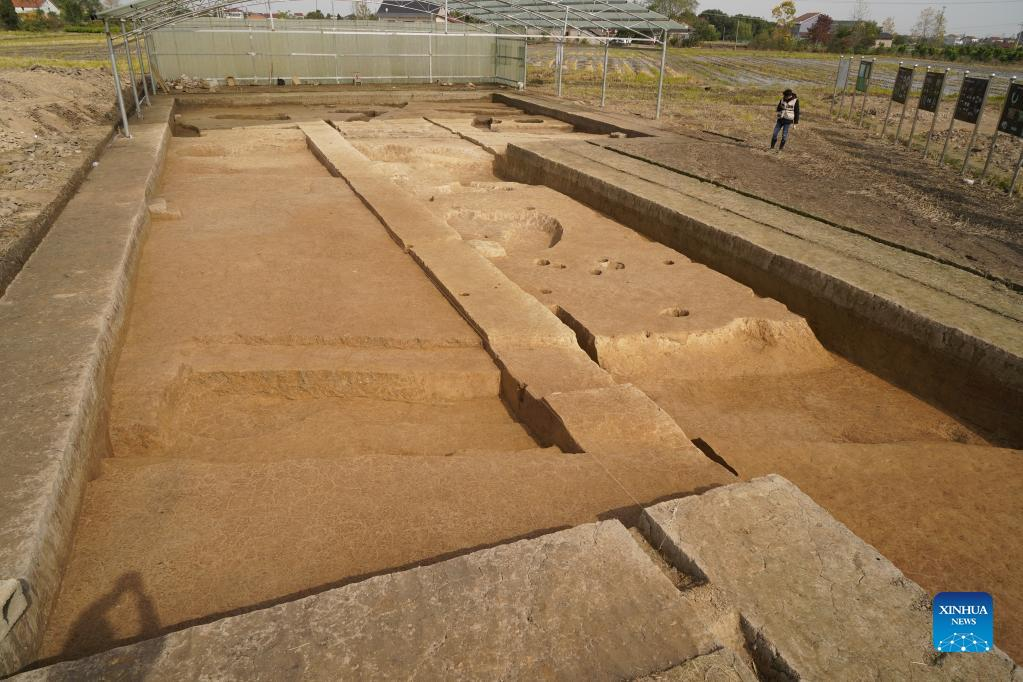 Undated photo shows a large-scale platform foundation found in the Sunjiagang site in Lixian County, central China's Hunan Province. Archaeologists have recently discovered new potteries and stone artifacts from a site dating back between 3,800 to 4,200 years in central China's Hunan Province, said the provincial cultural relics and archaeology research institute. TO GO WITH "Prehistoric relics unearthed in China's Hunan" (Xinhua)