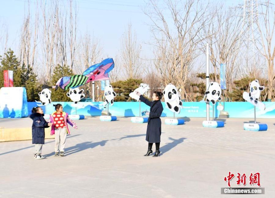 Citizens fly a kite at the Xiongan Winter Olympic Cultural Square, January 11, 2022. (Photo: China News Service/Han Bing)