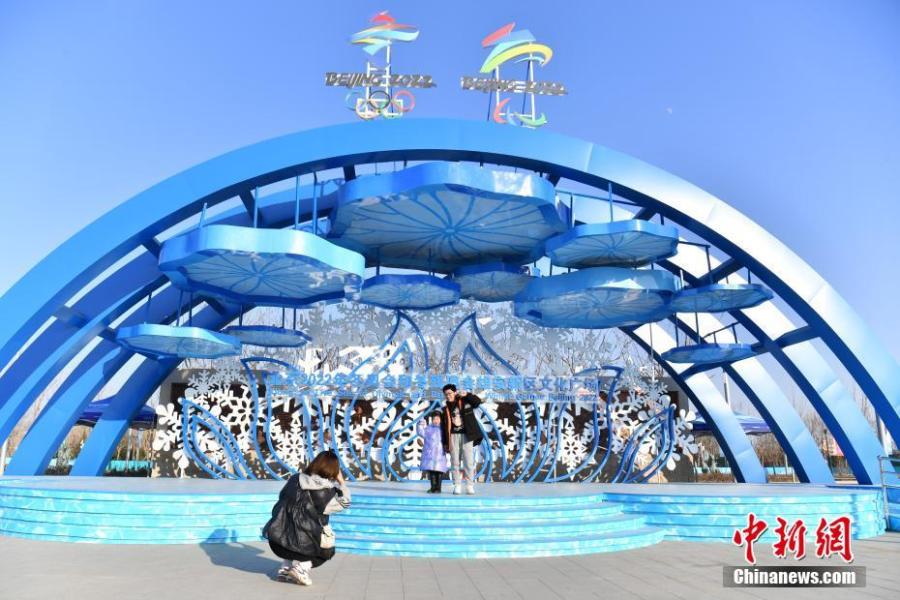 A family visits the Winter Olympic Cultural Square in Xiongan New Area in China’s Hebei Province, January 11, 2022. (Photo: China News Service/Han Bing)