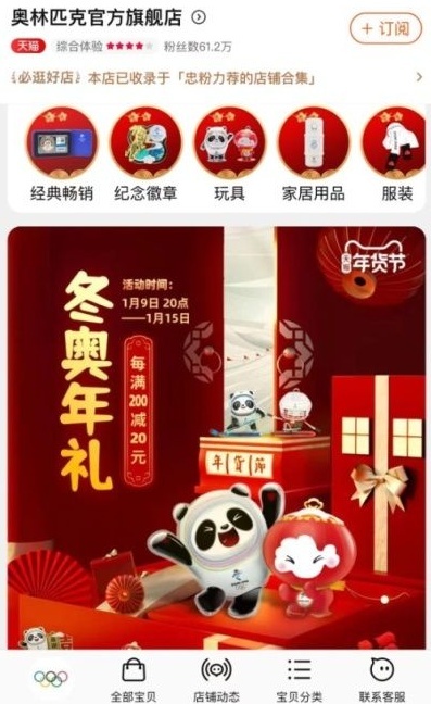 The photo shows the Olympic store on Tmall. (Photo/chinanews.com)