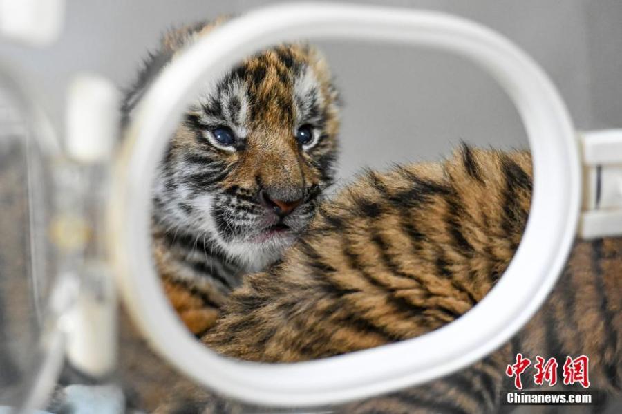 Two South China tiger cubs are in good shape in an incubator at a nature reserve in Shaoguan of south China’s Guangdong Province, January 12, 2022. (Photo: China News Service/Chen Jimin)
