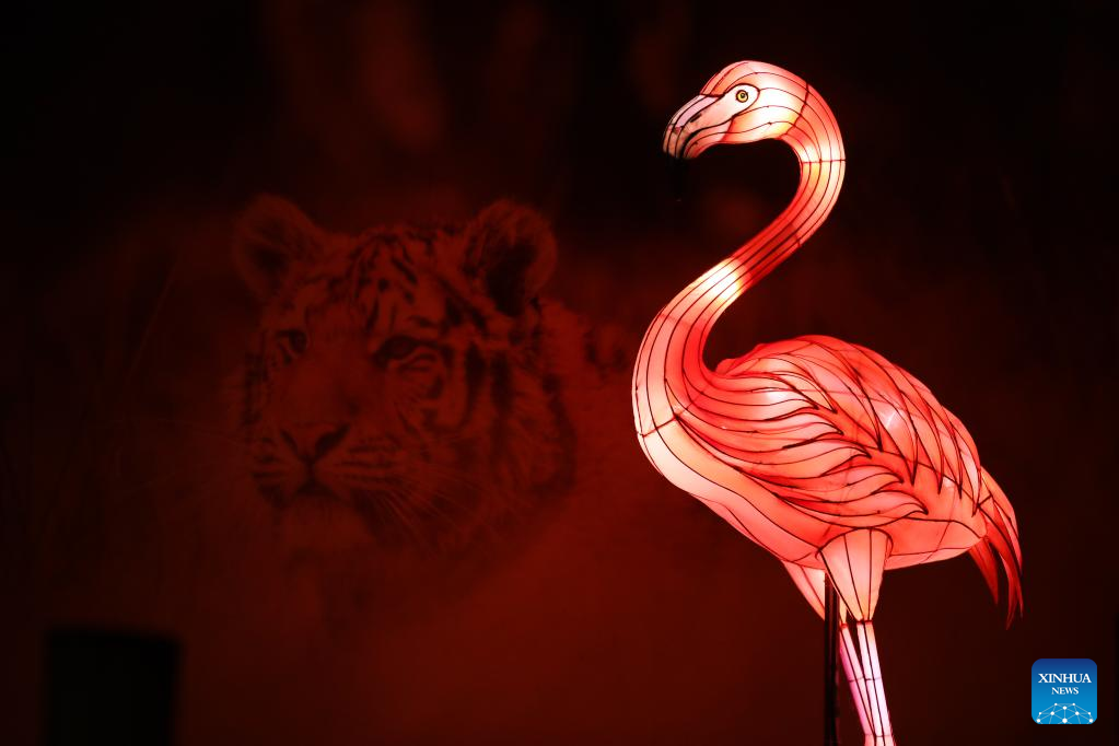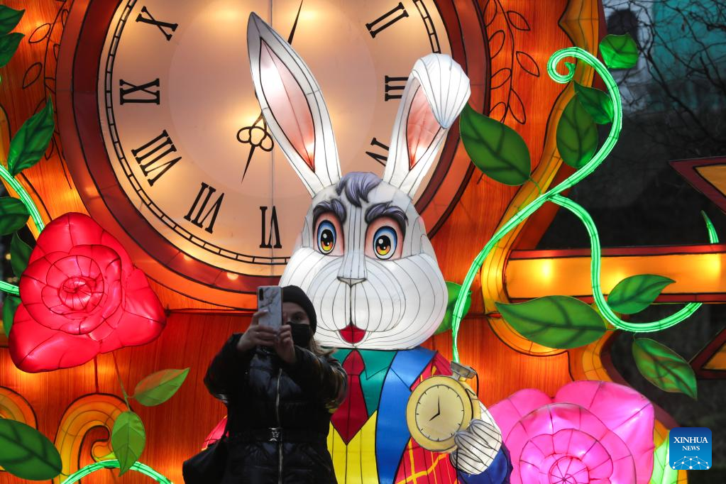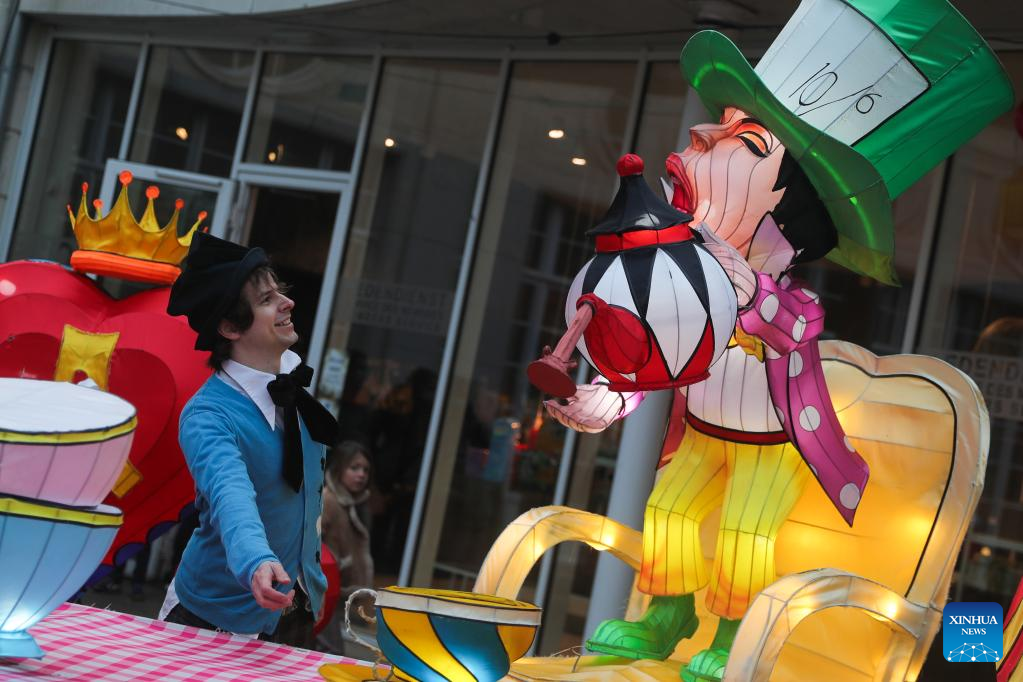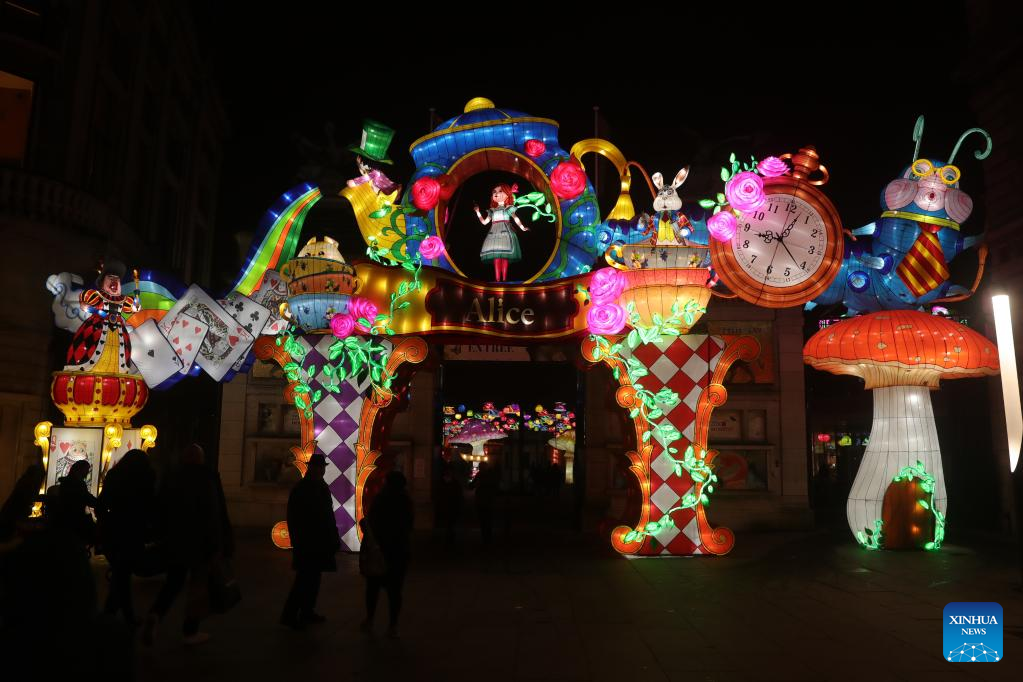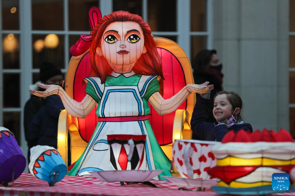 Light installations are pictured during the sixth edition of China light festival themed "Alice in Wonderland" at the Antwerp Zoo in Antwerp, Belgium, Jan. 12, 2022. (Xinhua/Zheng Huansong)