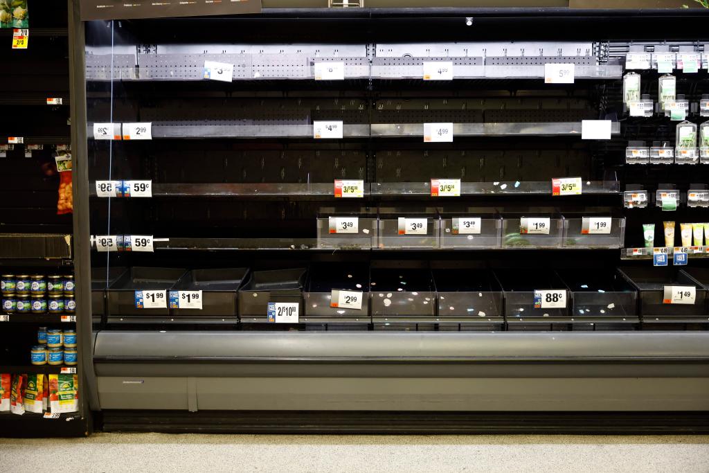 Some shelves are seen nearly empty at a grocery store in Washington, D.C., the United States on Jan. 10, 2022. (Photo by Ting Shen/Xinhua)