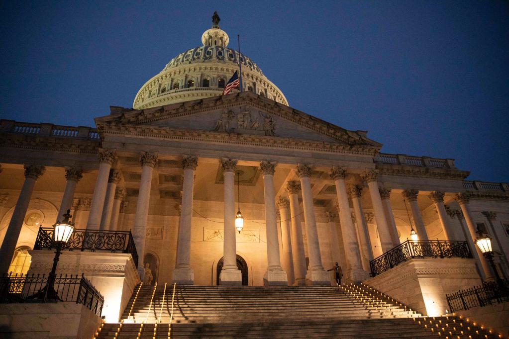 A U.S. national flag flies at half-staff and candles are lit at the U.S. Capitol building to mark the anniversary of the Jan. 6 attack on the Capitol in Washington, D.C., the United States, Jan. 6, 2022. (Photo by Aaron Schwartz/Xinhua)