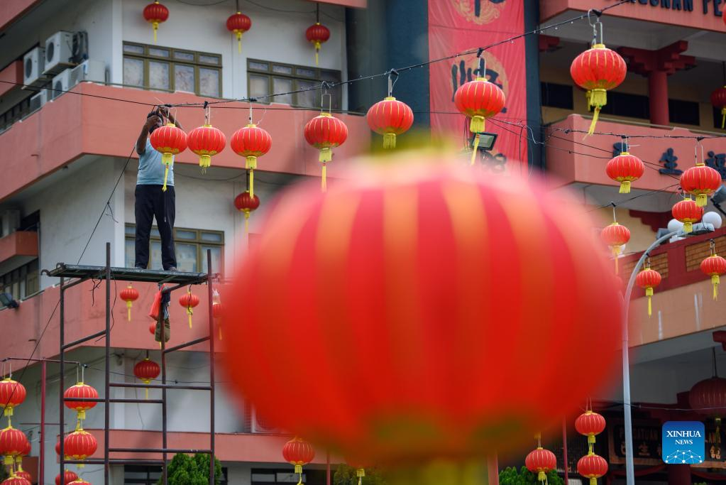 People hang lanterns for upcoming Spring Festival in Malaysia (2)