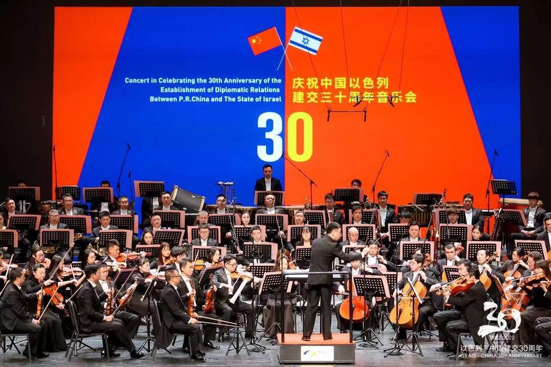 A concert celebrating the 30th anniversary of the establishment of diplomatic relations between China and Israel was held at the Poly Theatre in Beijing on the evening of January 17, 2022, to strengthen cultural exchanges and cooperation between the two countries.