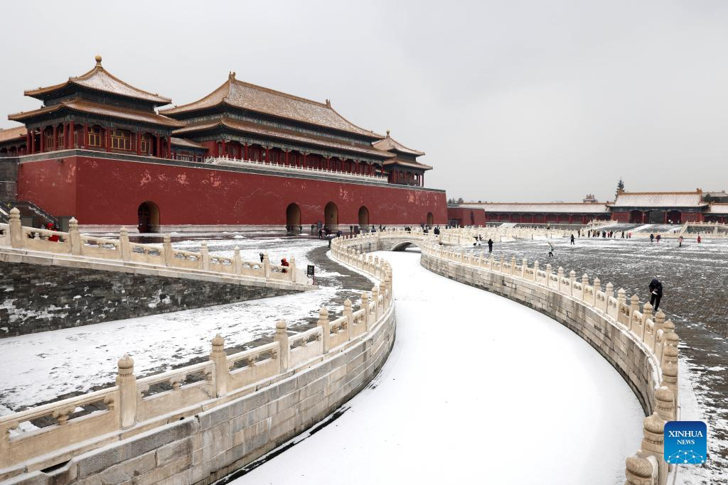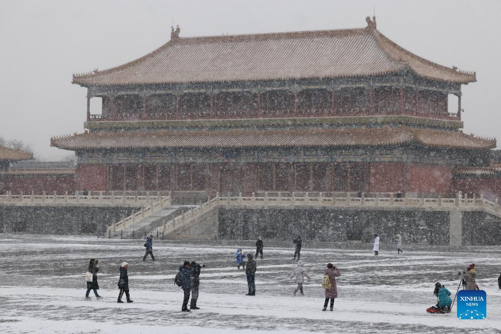 Tourists enjoy the snow scenery of the Palace Museum in Beijing, capital of China, Jan. 20, 2022. (Xinhua/Xing Guangli)