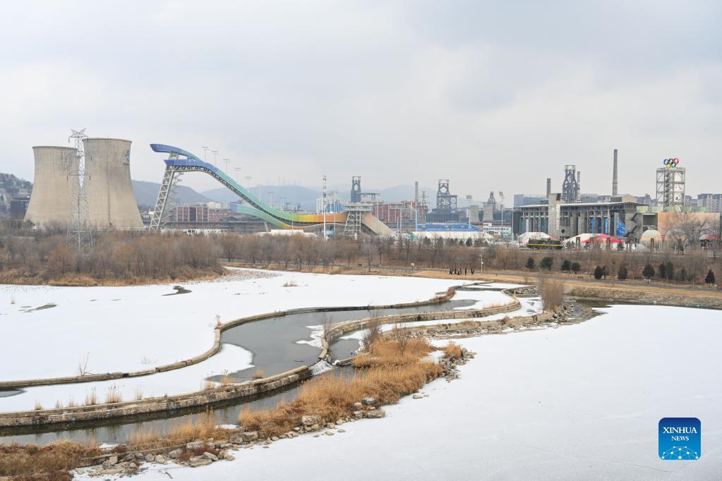 Photo taken on Jan. 20, 2022 shows the snow scenery of Shougang Park in Beijing, capital of China. (Xinhua/Chen Yehua)