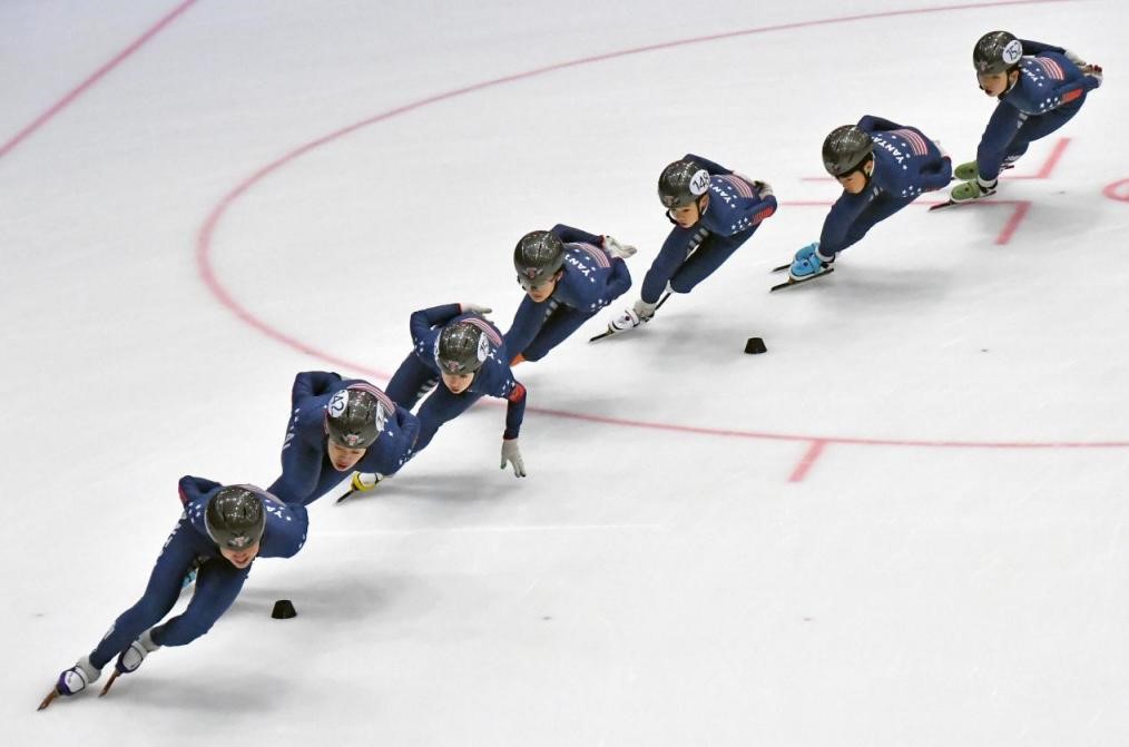 Young short track speed skating athletes join a training session in Yantai, east China’s Shandong province, Jan. 15, 2022. (People’s Daily Online/ Sun Wentan)
