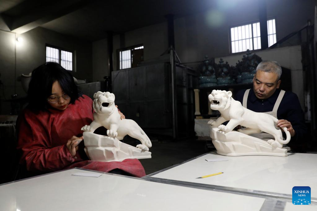 Artists in C China's Henan create tiger-themed porcelain works to greet Spring Festival (4)