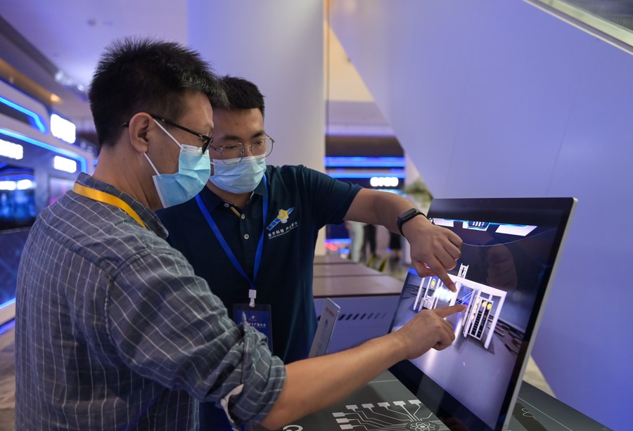 Participants experience quantum computing during the 2021 Quantum Industry Conference in Hefei, east China's Anhui Province, Sept. 18, 2021. (Xinhua/Han Xu)