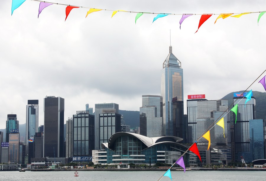 Photo taken on July 31, 2021 shows the Hong Kong Convention and Exhibition Center in south China's Hong Kong. (Xinhua/Wu Xiaochu)