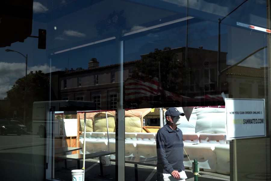 File photo taken on April 26, 2021 shows a man wearing a KN95 face mask on a street in San Mateo, California, the United States. (Xinhua/Wu Xiaoling)