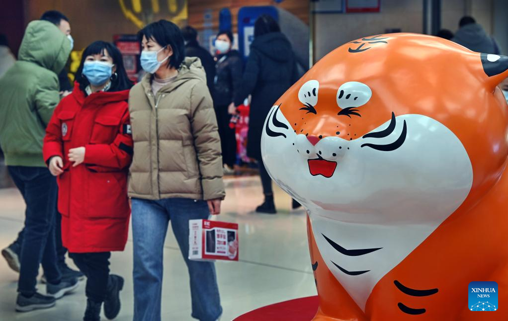 Citizens shop at a mall in Xi'an, northwest China's Shaanxi Province, Jan. 23, 2022. (Xinhua/Tao Ming)