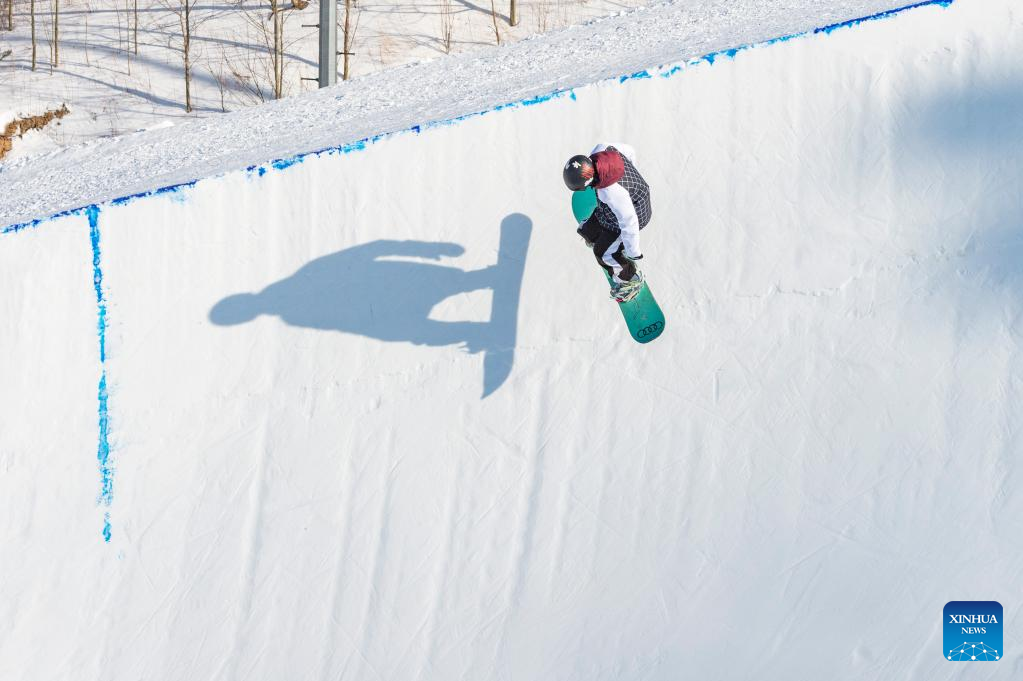 A skier from Heilongjiang Province participates in a training session at Yabuli Ski Resort in Harbin, northeast China's Heilongjiang Province, Jan. 21, 2022. Yabuli, located in northeastern China, is the cradle of Chinese winter sports. Boasting of professional ski area, Yabuli Resort hosted many national, continental and international winter games like FIS snowboard world cup, World Winter Universiade and the Asian Winter Games. (Xinhua/Xie Jianfei)
