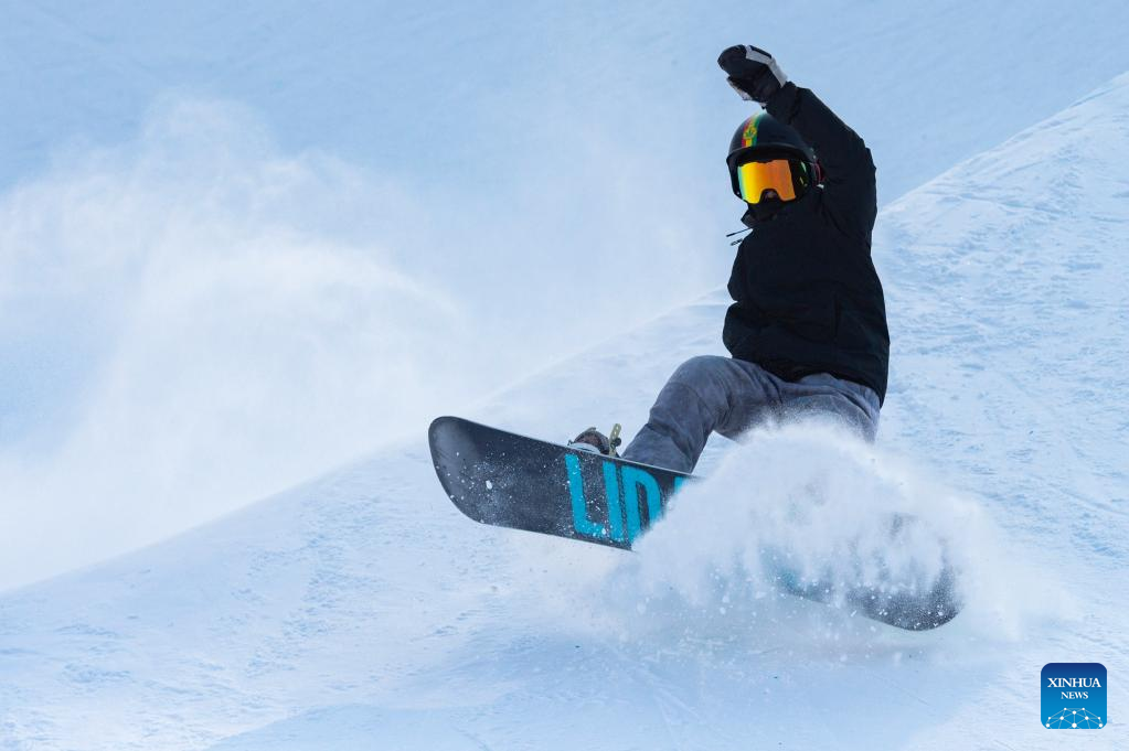 A skier from Heilongjiang Province participates in a training session at Yabuli Ski Resort in Harbin, northeast China's Heilongjiang Province, Jan. 21, 2022. Yabuli, located in northeastern China, is the cradle of Chinese winter sports. Boasting of professional ski area, Yabuli Resort hosted many national, continental and international winter games like FIS snowboard world cup, World Winter Universiade and the Asian Winter Games. (Xinhua/Xie Jianfei)