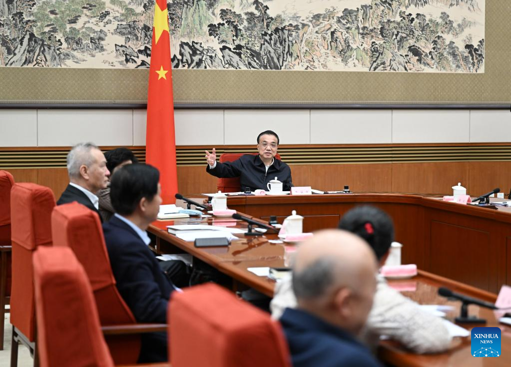 Chinese Premier Li Keqiang, a member of the Standing Committee of the Political Bureau of the Communist Party of China (CPC) Central Committee, makes exchanges with representatives from the education, science and technology, culture, health, and sports sectors at a symposium to hear their opinions on a draft government work report on Jan. 21, 2022. Chinese Vice Premier Han Zheng, also a member of the Standing Committee of the Political Bureau of the CPC Central Committee, attended the symposium. (Xinhua/Xie Huanchi)
