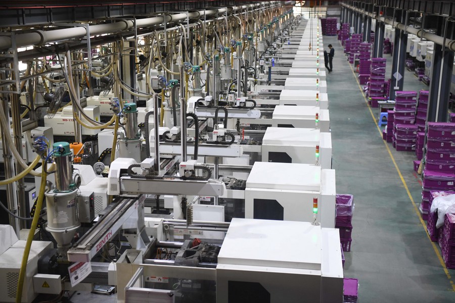A factory producing toy bricks is pictured in Shantou City, south China's Guangdong Province, Dec. 2, 2021. (Xinhua/Deng Hua)