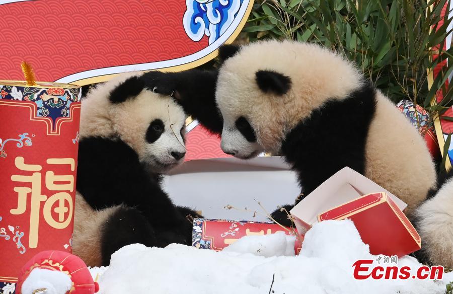 Photo taken on Jan. 24, 2022 shows giant panda cubs at the Shenshuping base of China Conservation and Research Center for Giant Panda, southwest China's Sichuan Province. (Photo: China News Service/An Yuan)