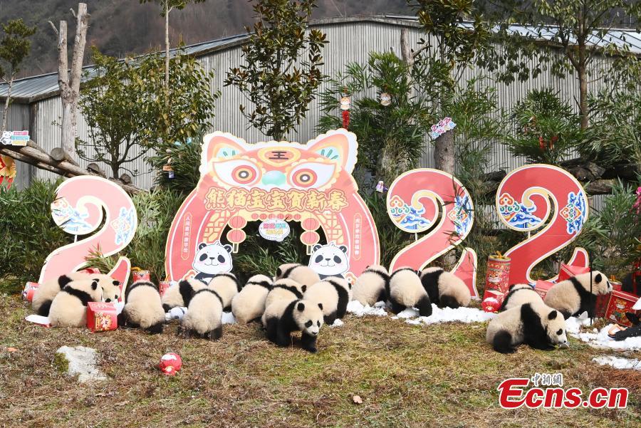 Giant panda cubs make group appearance in SW China's Sichuan (7)