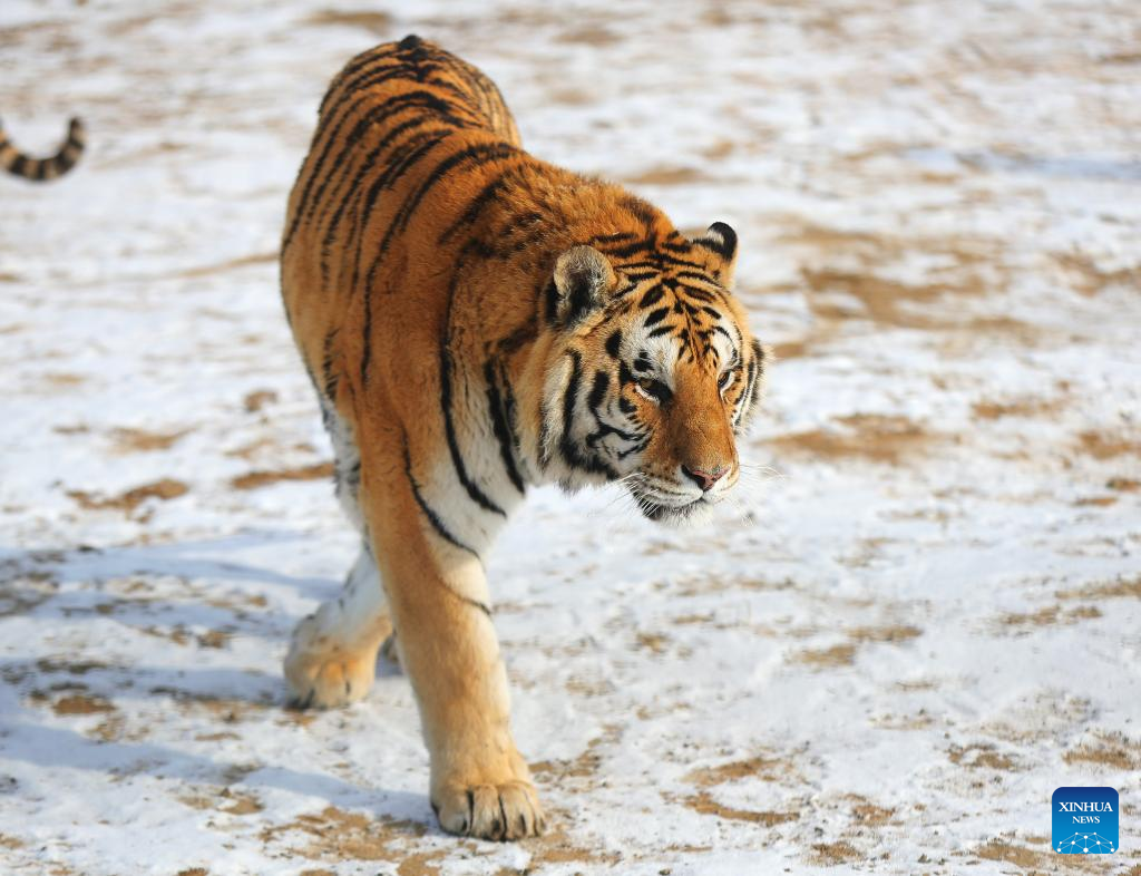 A Siberian tiger is seen at Guaipo Siberian Tiger Park in Shenyang, northeast China's Liaoning Province, Jan. 24, 2022. The 2022 Chinese Lunar New Year falls on Feb. 1. It is based on a 12-year Zodiac cycle of characters, with 2022 being the Year of the Tiger. (Xinhua/Yang Qing)