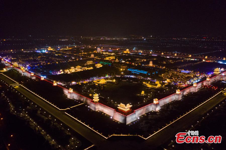 Photo taken on Jan. 25, 2022 shows the night view of the ancient county of Taiyuan in Taiyuan City, capital of north China's Shanxi Province. (Photo: China News Service/Wu Junjie)