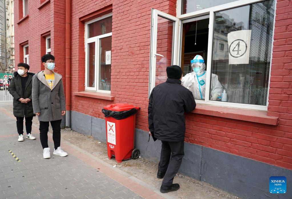 Photo taken on Jan. 26, 2022 shows a COVID-19 testing site in Xicheng District in Beijing, capital of China. (Xinhua/Ren Chao)