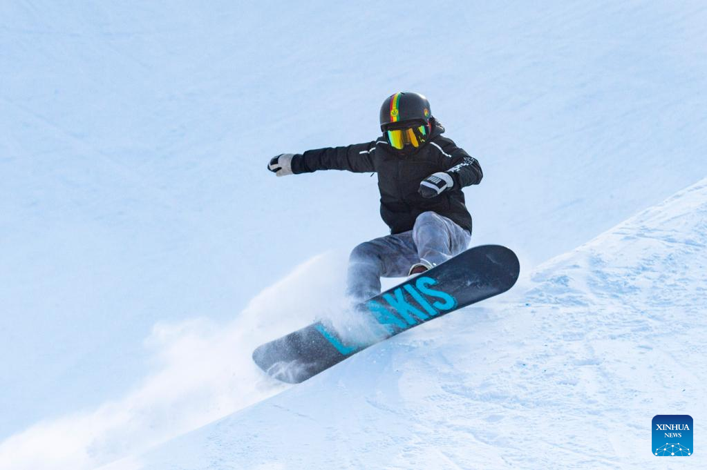 A skier participates in a training session at Yabuli Ski Resort in Harbin, northeast China's Heilongjiang Province, Jan. 21, 2022. The upcoming Beijing 2022 Winter Olympic Games created an intense Olympic atmosphere in Heilongjiang, a major province of winter sports in China. (Xinhua/Xie Jianfei)