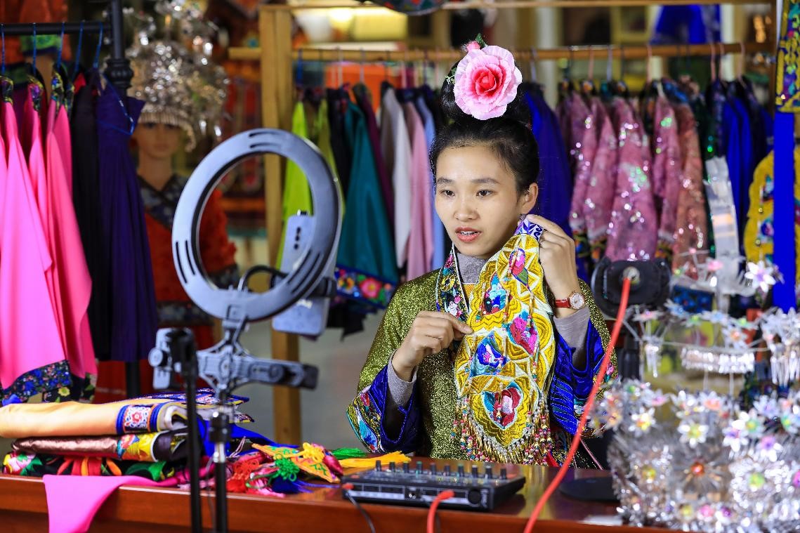 “I learned livestreaming from scratch and I’m now able to introduce embroidery and batik vividly to consumers online. Once I sold 200,000 yuan ($31,640) worth of products in a show,” said Yang Xuexue, a local embroiderer.