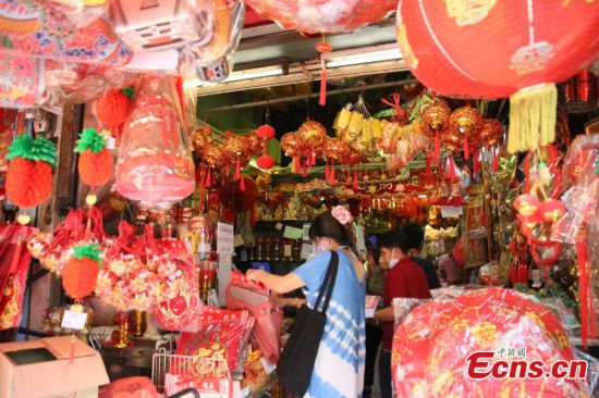 Customers buy New Year decorations at a shop in Chinatown in Bangkok, Thailand, Jan. 26, 2022. (Photo: China News Service/Wang Guoan)