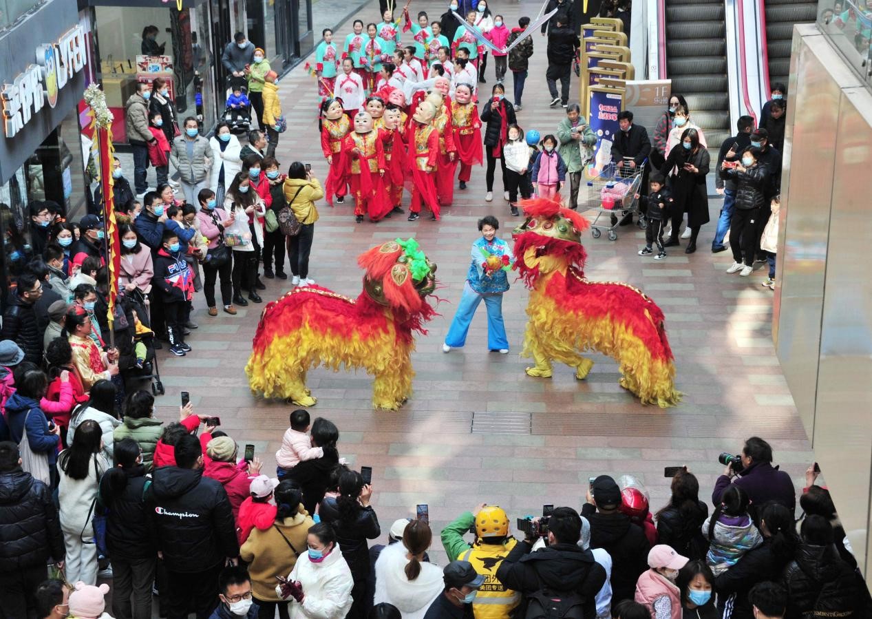 Consumers are attracted to a Spring Festival folk cultural activity held at a shopping mall in Shanghai, Feb. 16, 2021. (People’s Daily Online/ Yang Jianzheng)