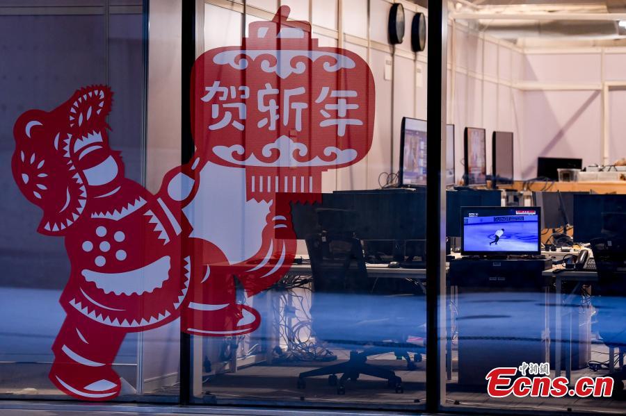 Photo taken on Jan. 26, 2022 shows a paper-cut celebrating the Chinese New Year at the Main Media Center for the 2022 Olympic and Paralympic Winter Games in Beijing, capital of China. (Photo: China News Service/He Penglei)