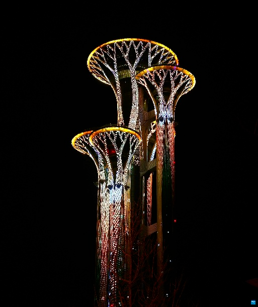 Photo taken on Jan. 29, 2022 shows a light show at the Beijing Olympic Tower in Beijing, capital of China. (Xinhua/Ding Xu)
