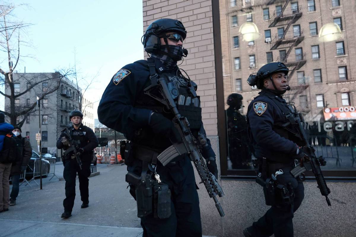 Police officers gather as the body of NYPD officer Wilbert Mora is transferred in an ambulance from NYU Langone Hospital to the Riverdale Funeral Home on January 26, 2022 in New York City. Officer Mora was critically injured, and died yesterday, after responding to a domestic violence call on January 21, where his partner, 22-year-old Officer Jason Rivera was shot and killed. [Photo/Agencies]